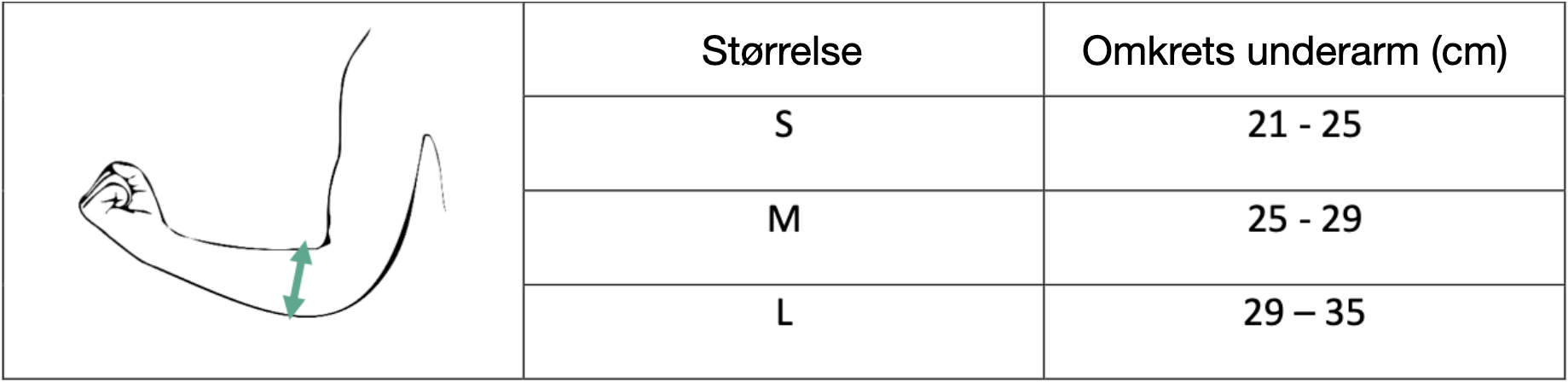 Armmansjetten finnes i tre størrelser og kan tilpasses ved hjelp av tre borrelåser rundt underarm og overarm. Albuen er åpen for å ikke begrense bøy og strekk av arm.